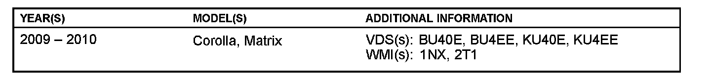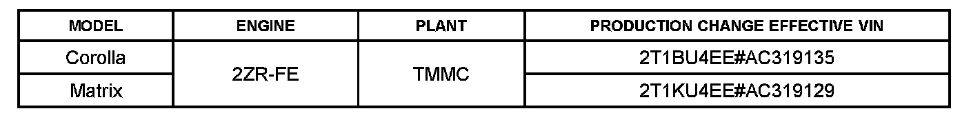 This TSB applies to all NUMMI built (VINs starting with 1NX) and to TMMC built vehicles produced BEFORE the Production Change Effective VINs shown.