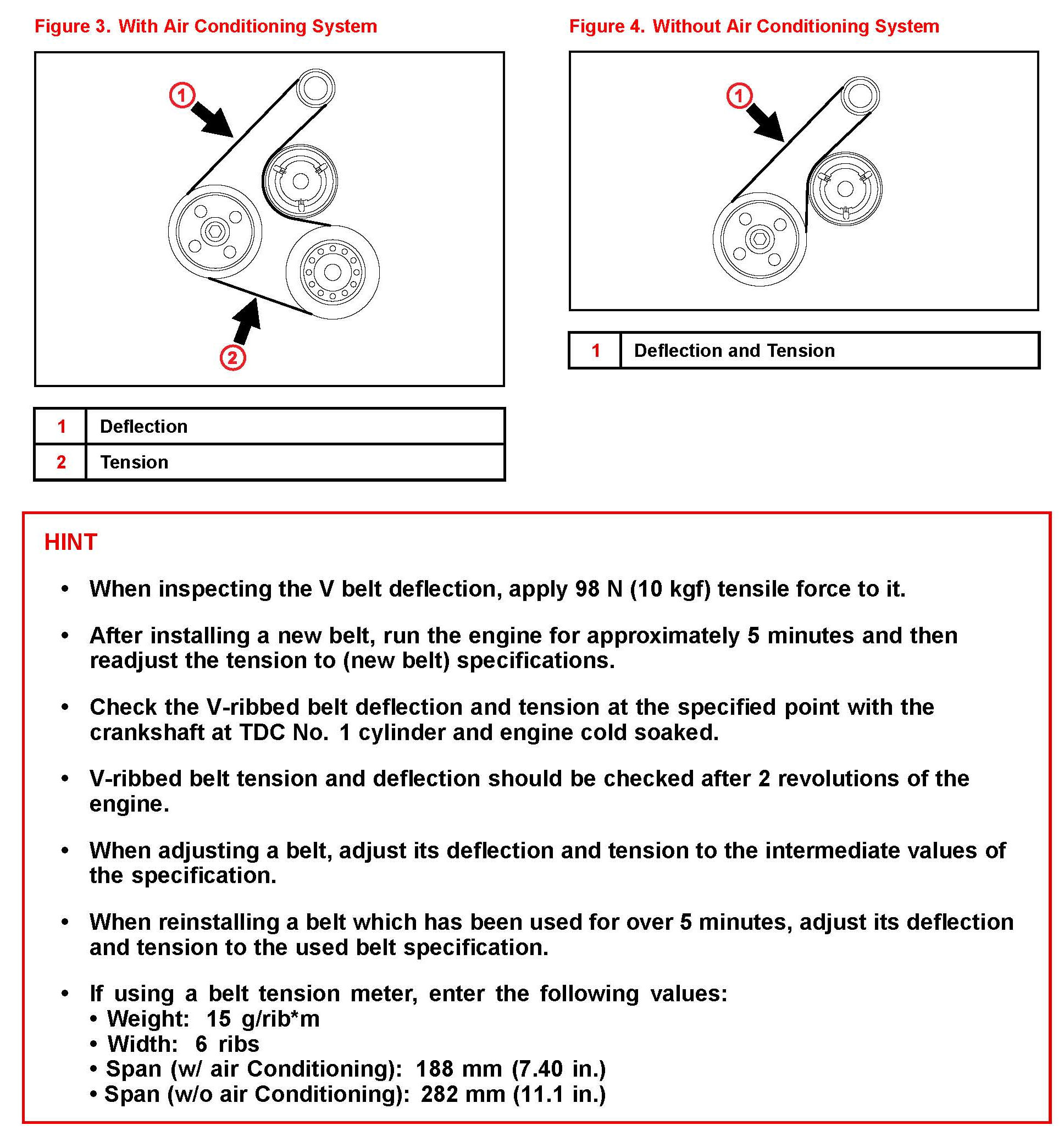 If the belt deflection is not as specified adjust it following the procedures in steps 6 and 7 in this bulletin.