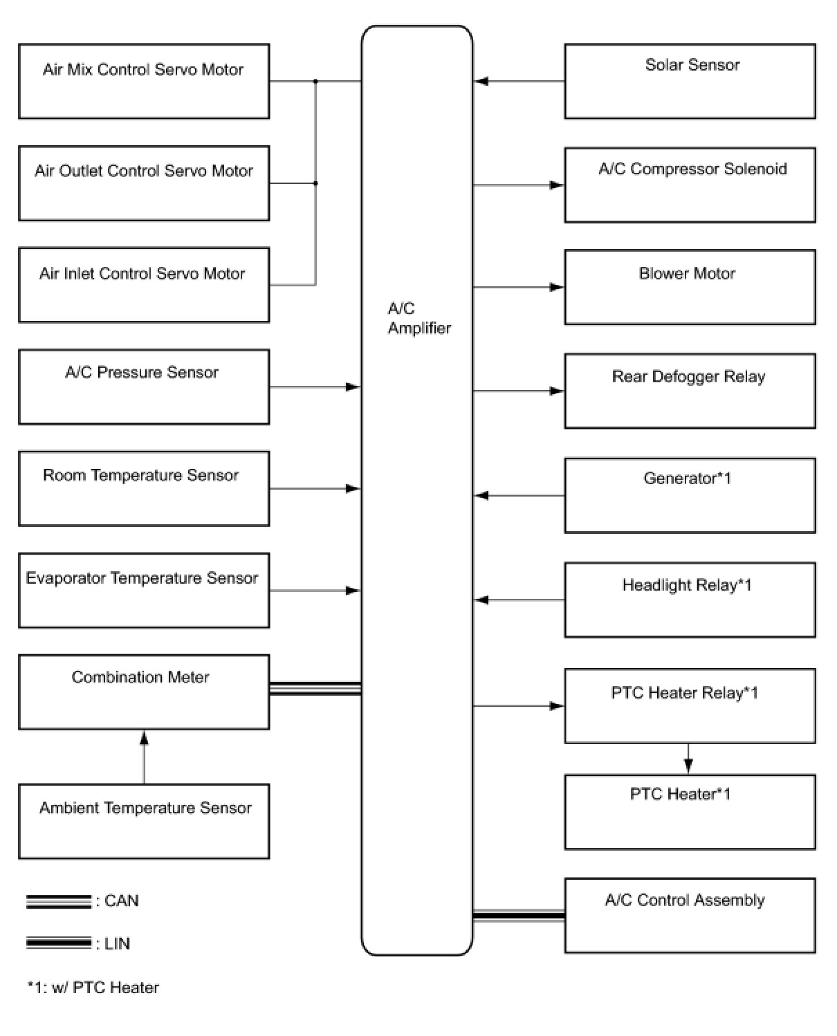 - In previous automatic air conditioning systems, the A/C amplifier determined the required outlet air temperature and blower air volume in accordance with the calculation formula that has been obtained based on information received from the sensors.