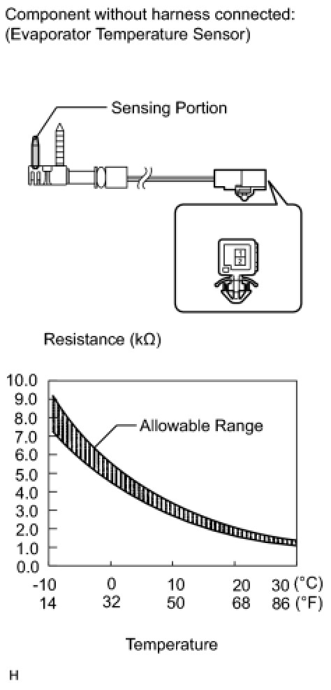If the resistance is not as specified, replace the evaporator temperature sensor.