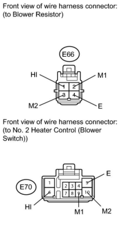 10. CHECK HARNESS AND CONNECTOR (BLOWER MOTOR - BLOWER RESISTOR, NO. 2 HEATER CONTROL)
