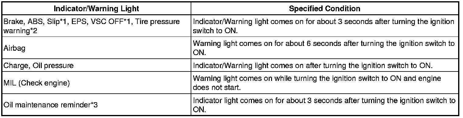 (a) The illumination function of the warning, indicator, or reminder light listed below can be confirmed when turning the ignition switch to ON.