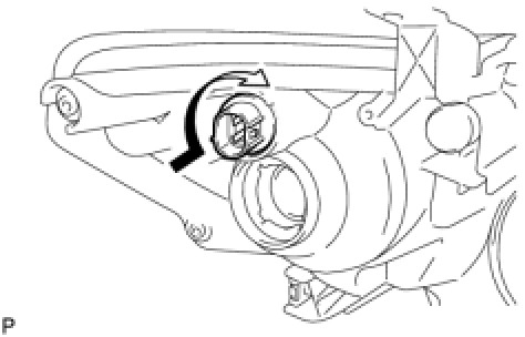 (b) Turn the front side marker light bulb and front side marker light socket in the direction indicated by the arrow and install them as a unit.