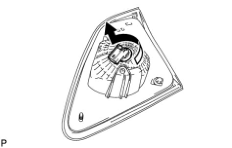 (a) Turn the back up light bulb and the back up light socket in the direction indicated by the arrow and disconnect them as a unit.