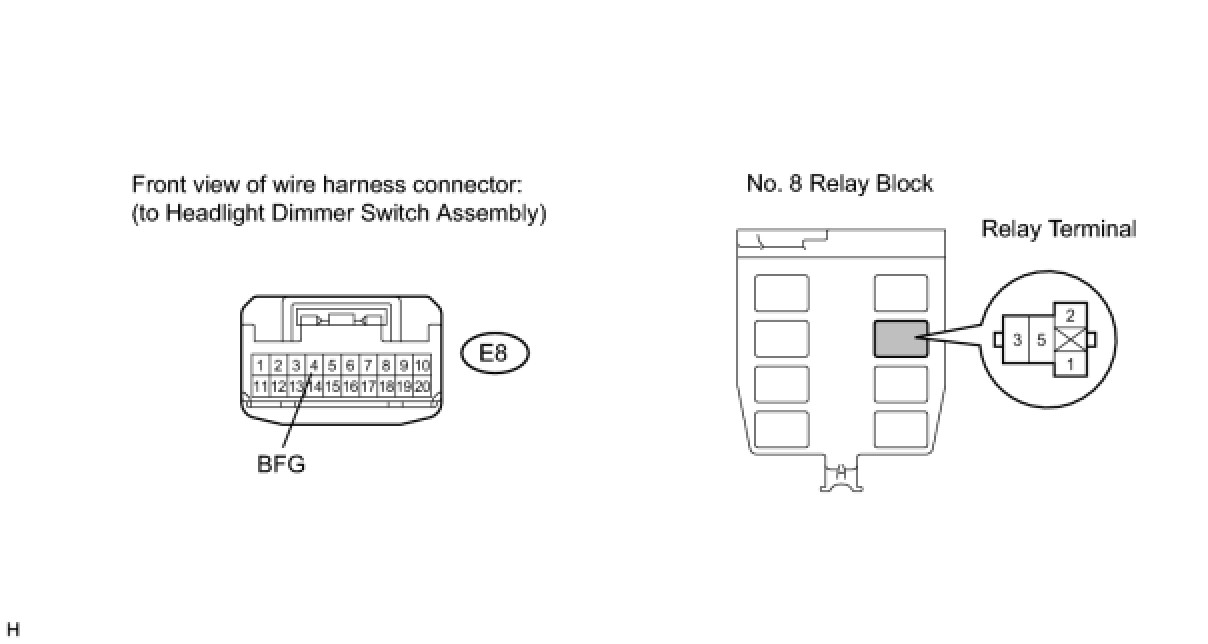 (1) Disconnect the E8 headlight dimmer switch assembly connector.