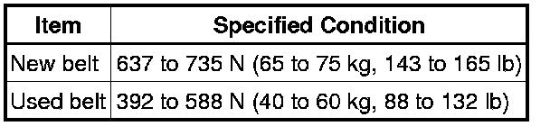 - When inspecting the V belt deflection, apply 98 N (10 kgf) tensile force to it.