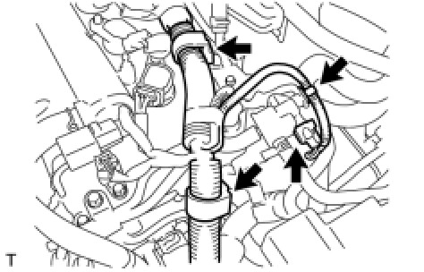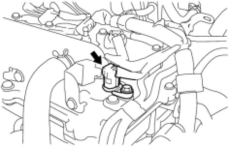 (1) Disconnect the duty vacuum switching valve connector and 3 engine wire harness clamps.