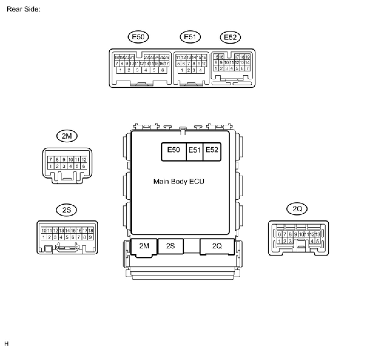 (c) Reconnect the 2B, 2E, 2F and 2G junction block and E51 ECU connectors.