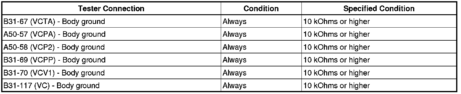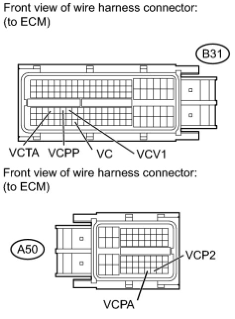 When the VC circuit is short-circuited, the microprocessor in the ECM and sensors that are supplied with power through the VC circuit are inactivated because the power is not supplied from the VC circuit. Under this condition, the system does not start up and the MIL does not illuminate even if the system malfunctions.