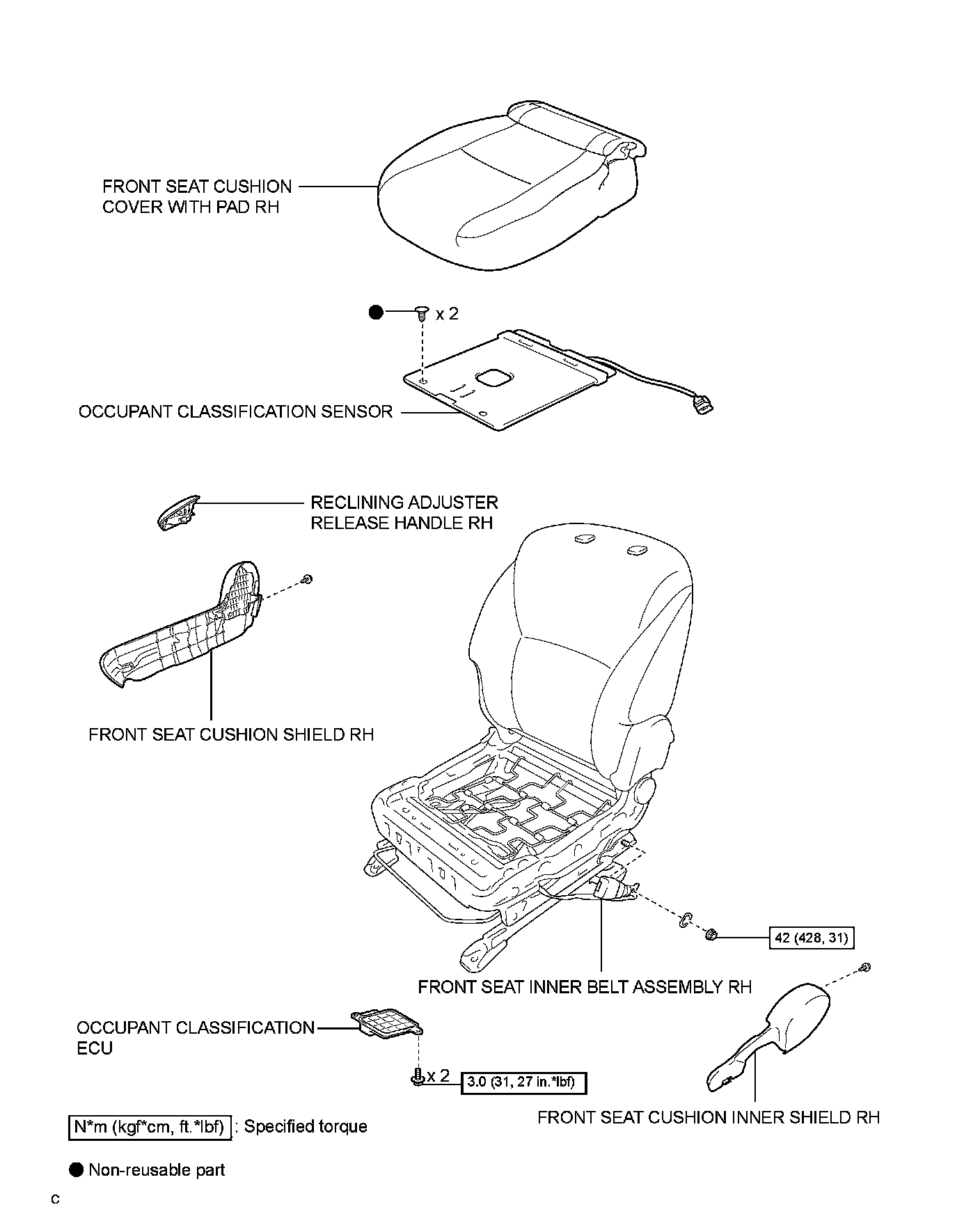SUPPLEMENTAL RESTRAINT SYSTEMS: FRONT SEAT CUSHION ASSEMBLY (w/ Occupant Classification ECU, Occupant Classification Sensor): COMPONENTS