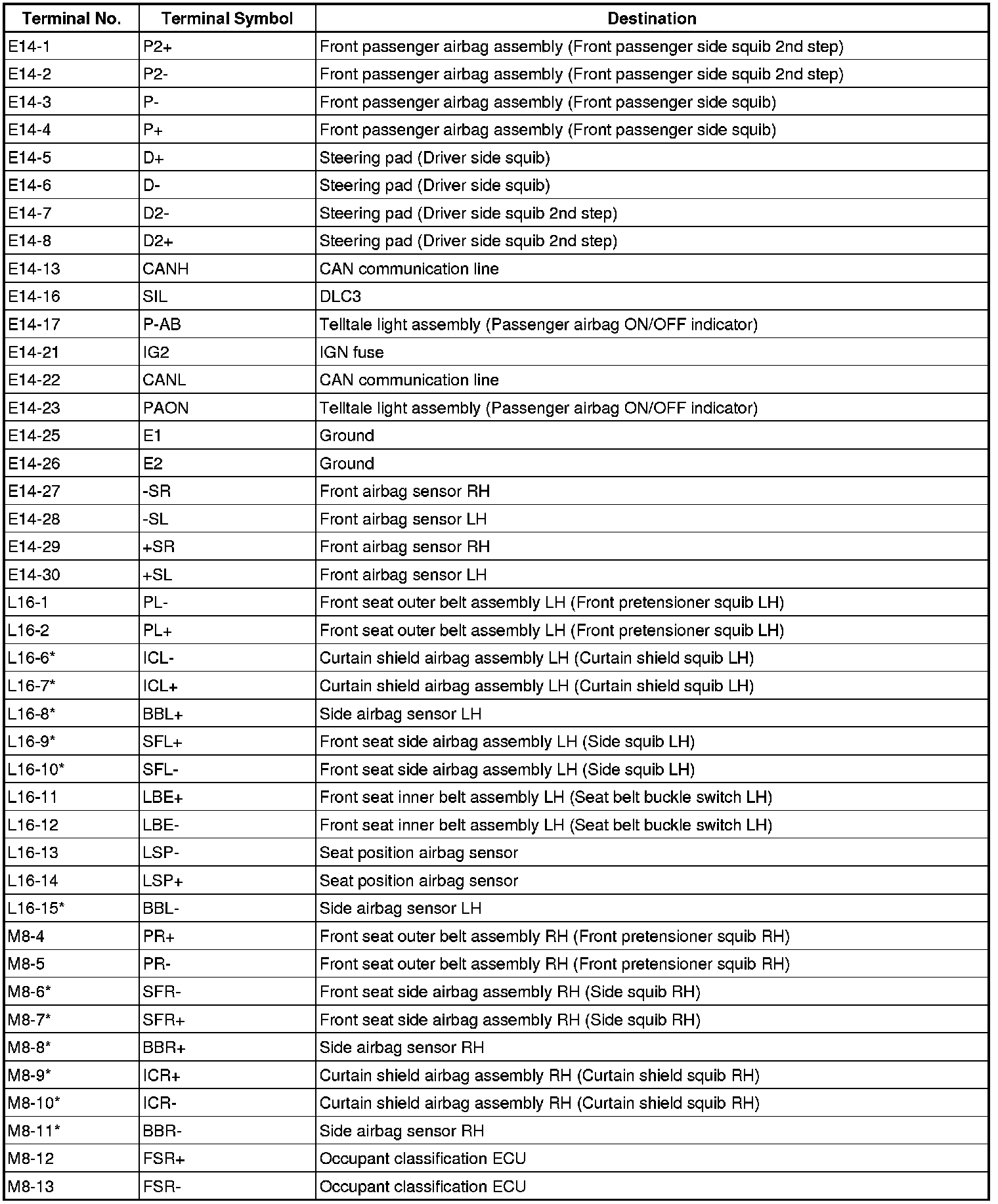 SUPPLEMENTAL RESTRAINT SYSTEMS: AIRBAG SYSTEM: TERMINALS OF ECU