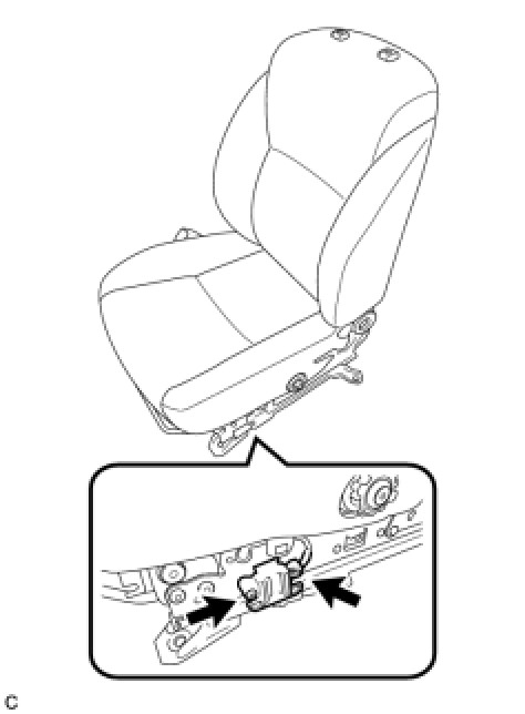 (c) Remove the seat position sensor from the seat slide position sensor protector as shown in the illustration.