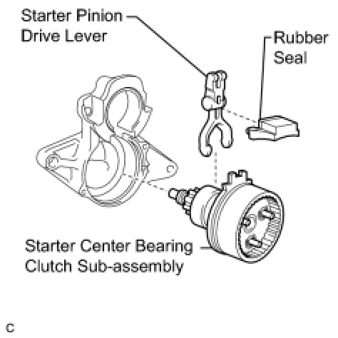 (b) Remove the starter center bearing clutch sub-assembly, rubber seal, and the starter pinion drive lever.