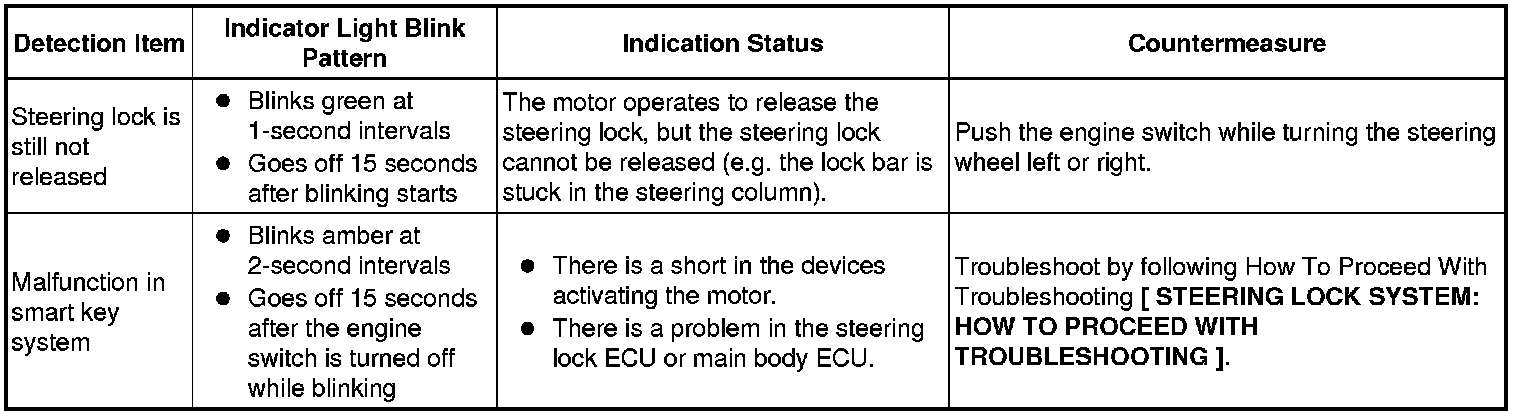(a) The steering lock ECU blinks the LED indicator of the engine switch when any of the following problems occurs in the system: