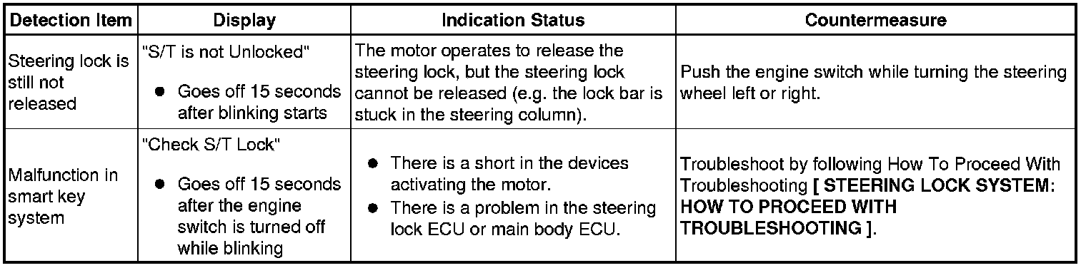 (a) The steering lock ECU displays a warning on the combination meter when any of the following problems occurs in the system.