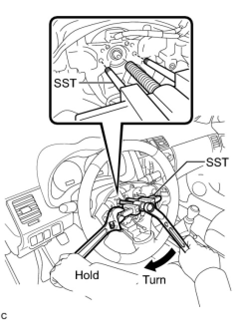 (d) Using SST, remove the steering wheel assembly.