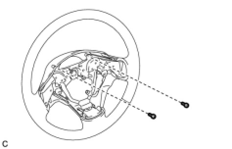 (a) Remove the 2 steering pad attaching screws from the lower steering wheel boss cover.