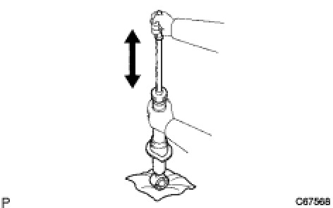 (a) Compress and extend the shock absorber rod, and check that there is no abnormal resistance or unusual sound during operation.