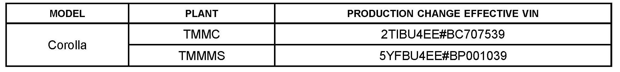 This bulletin applies to vehicles produced BEFORE the Production Change Effective VINs shown below.