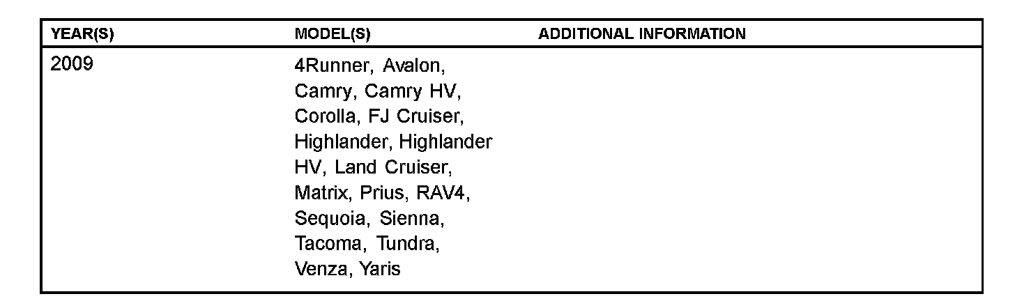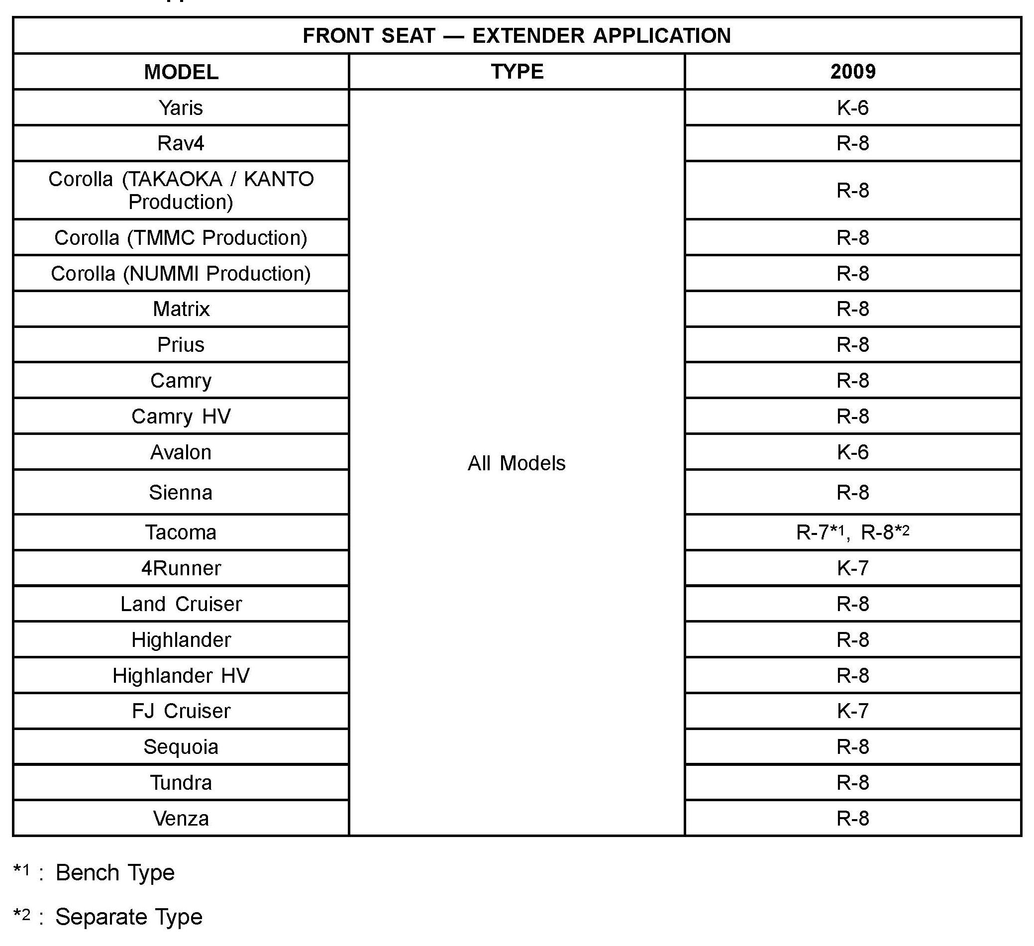 ^ Applicability and Seat Belt Extender Application sections have been updated to include 2009 Venza.