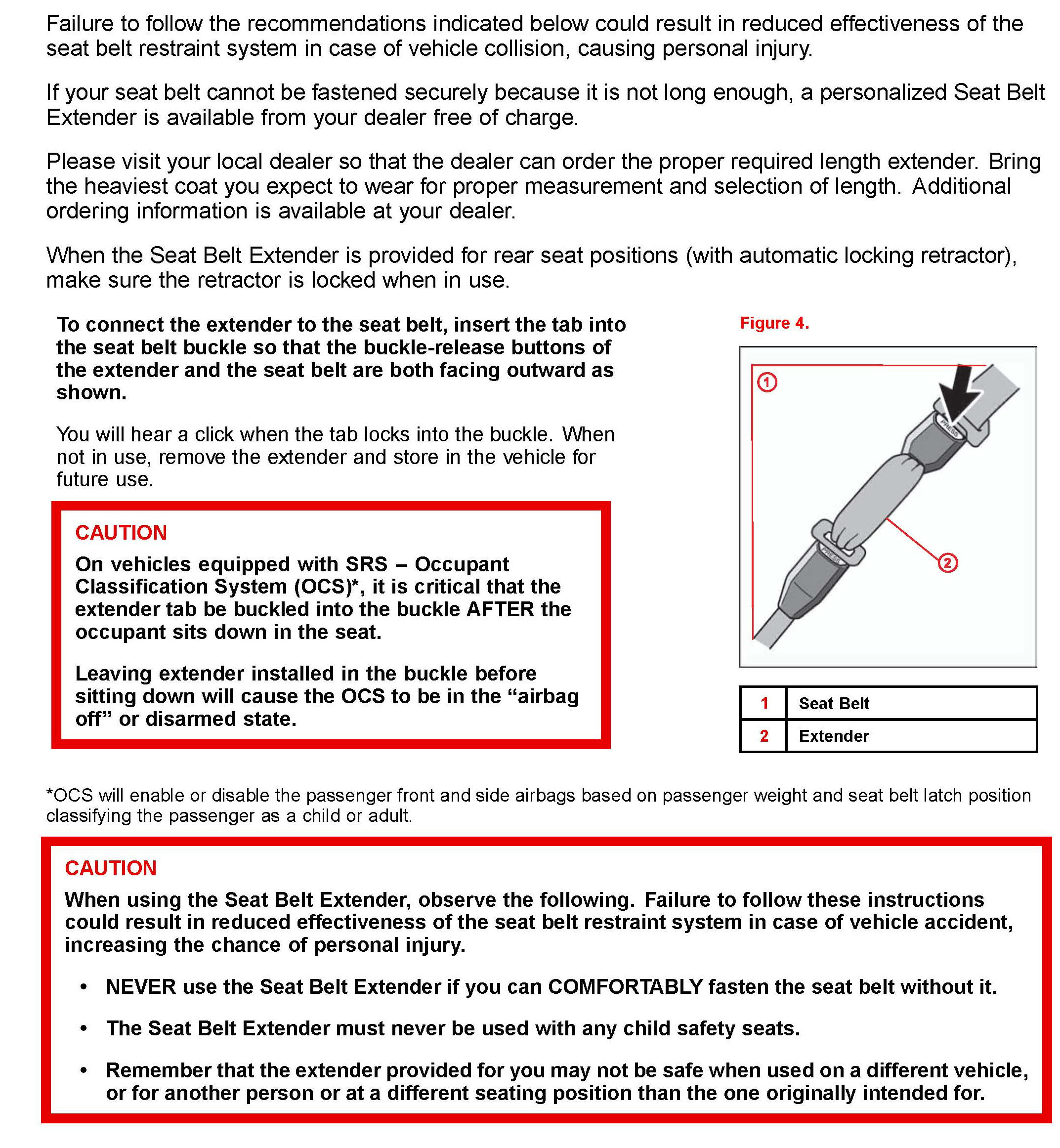 ^ Owners are informed of the Seat Belt Extender availability through the Owner's Manual included in each vehicle.