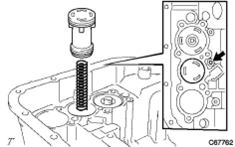 (a) Apply compressed air (392 kPa, 4.0 kgf/cm2, 57 psi) to the oil hole and remove the C-3 accumulator piston and spring.