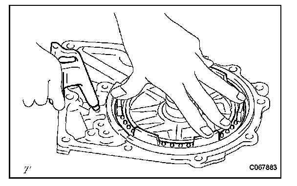 (a) Remove the 7 bolts and the oil pump assembly from the transaxle case.