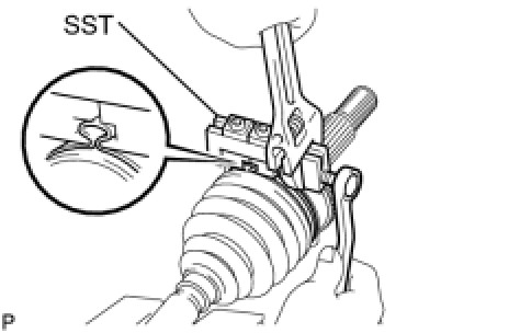 (a) Using pliers, install the new front axle inboard joint boot clamp as shown in the illustration.