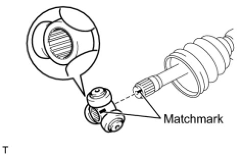 (d) Align the matchmarks and install the tripod joint onto the front axle outboard joint shaft.
