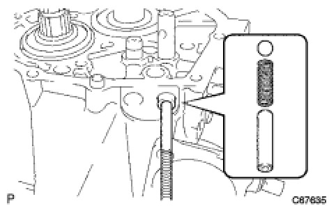 (d) Using a magnetic pick-up tool, remove the seat, spring and ball from the transaxle case.