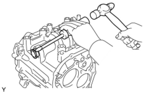 (a) Using SST and a plastic hammer, remove the shift and select lever shaft slide ball bearing.