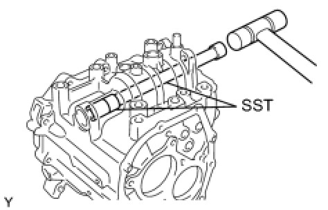 (a) Using SST and a hammer, remove the transaxle case oil seal from the transaxle case.