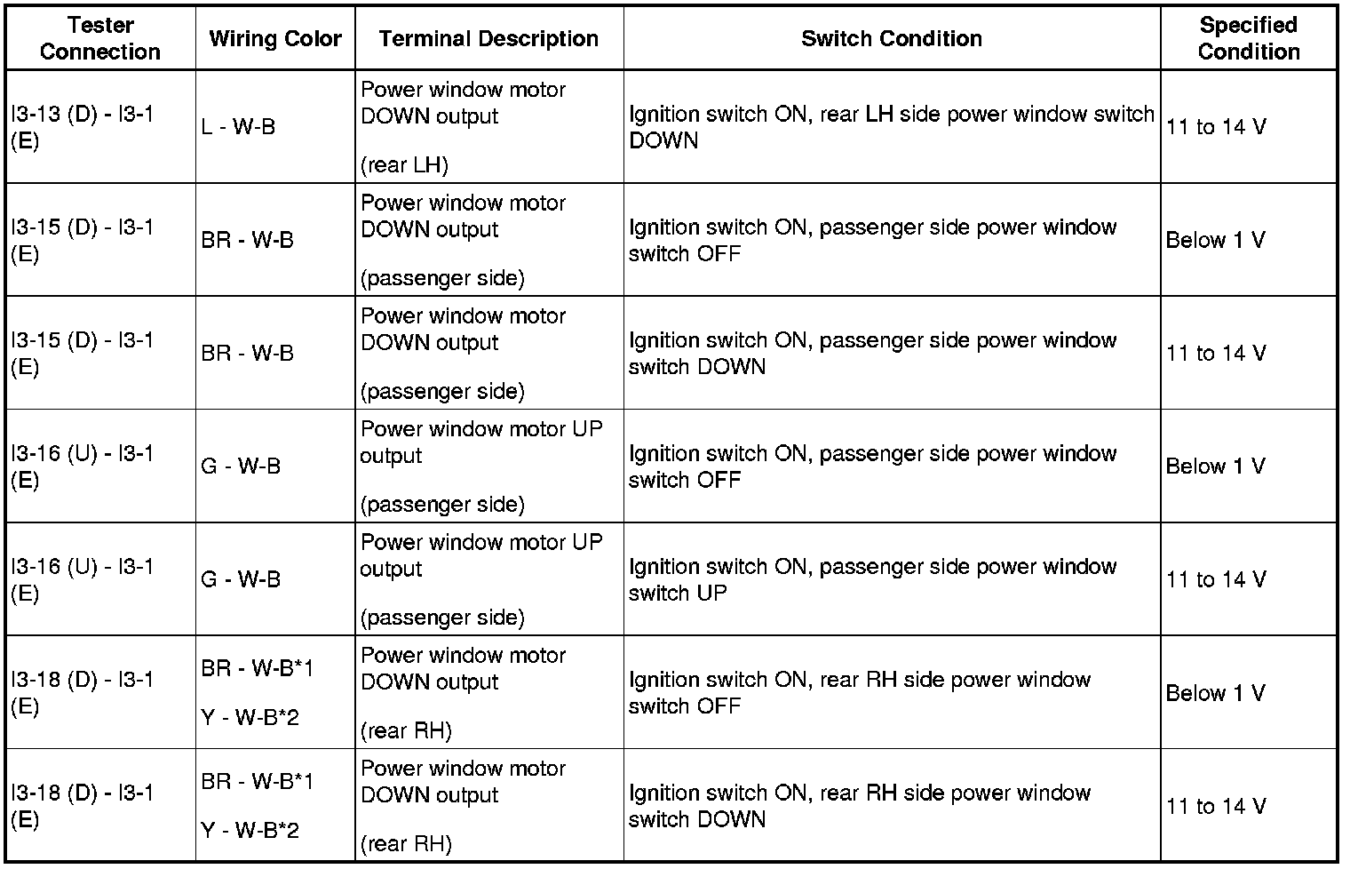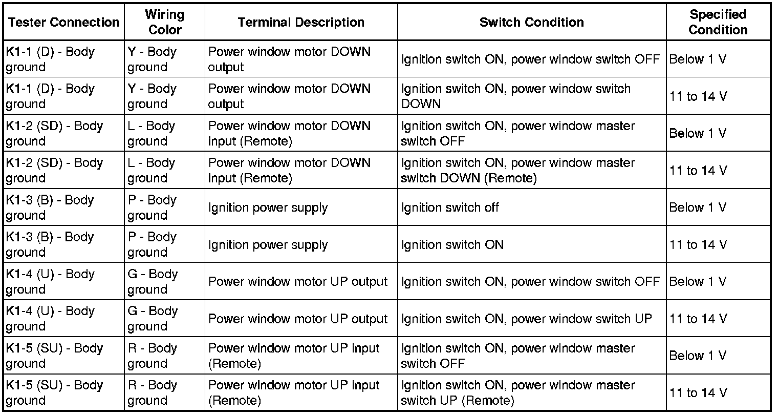 WINDOW / GLASS: POWER WINDOW CONTROL SYSTEM: TERMINALS OF ECU