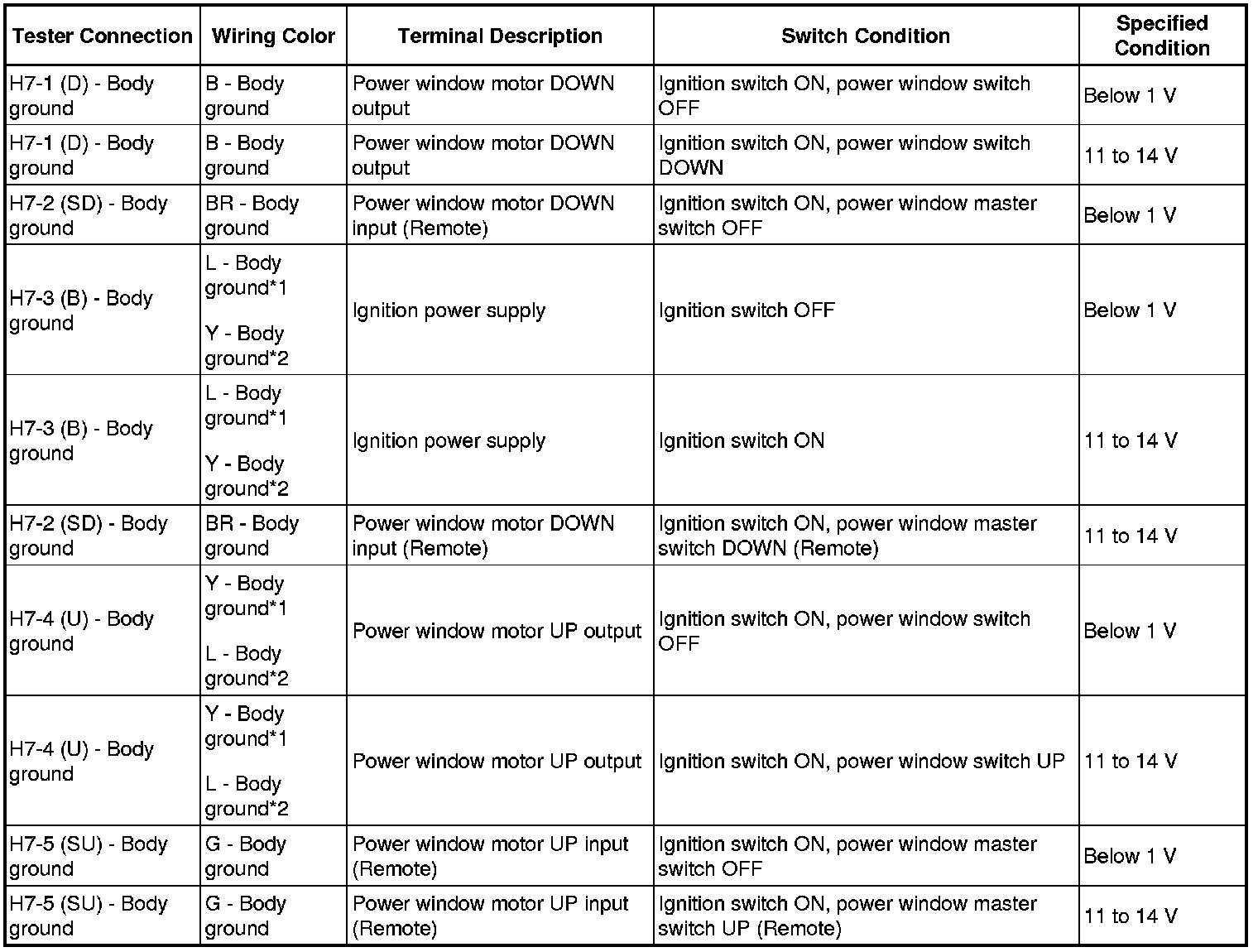 If the result is not as specified, the master switch or wire harness may have a malfunction.