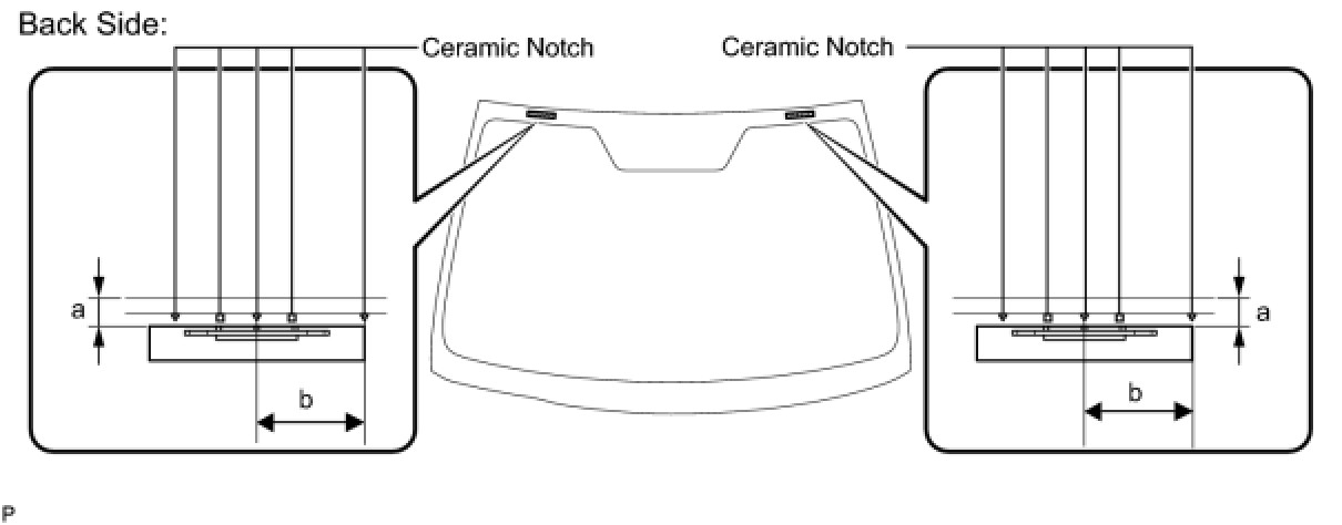 (3) Place matchmarks on the windshield glass and vehicle body on the locations indicated in the illustration.