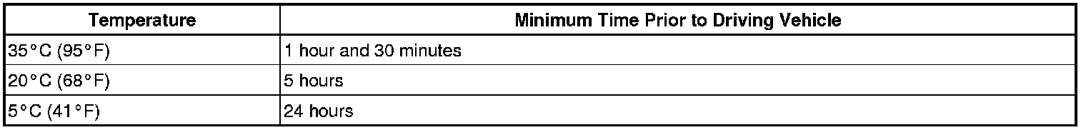 NOTE: Do not drive the vehicle for the amount of time described in the table below.