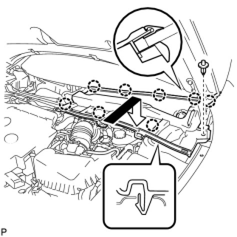(a) Engage the 7 clips to install the hood to cowl top seal.