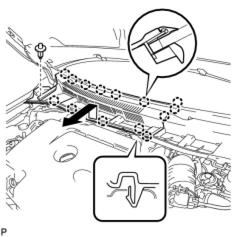 (a) Disengage the clip and 8 claws, and remove the cowl top ventilator louver LH.