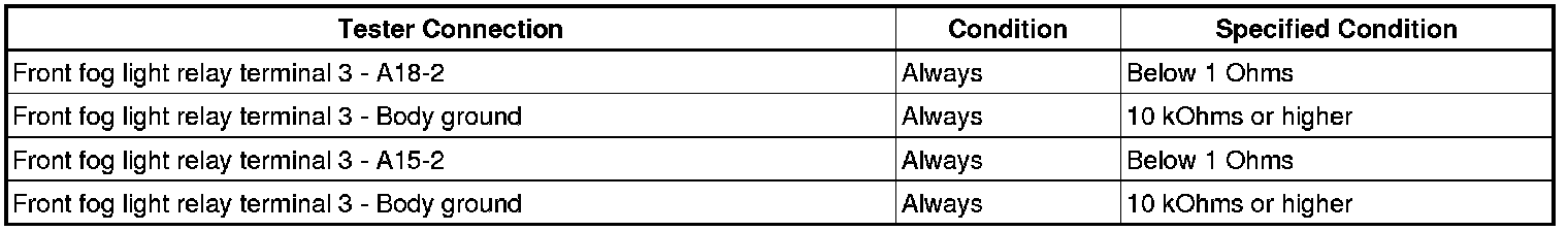 3. CHECK HARNESS AND CONNECTOR (BATTERY - FRONT FOG LIGHT RELAY)