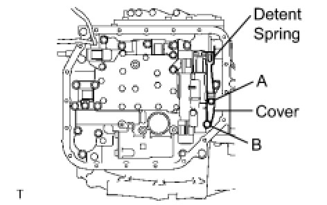 (e) Temporarily install the manual detent spring and manual detent spring cover with the 2 bolts.