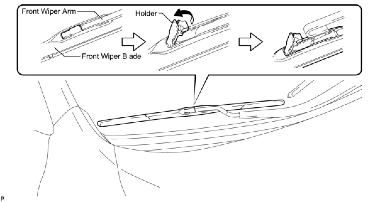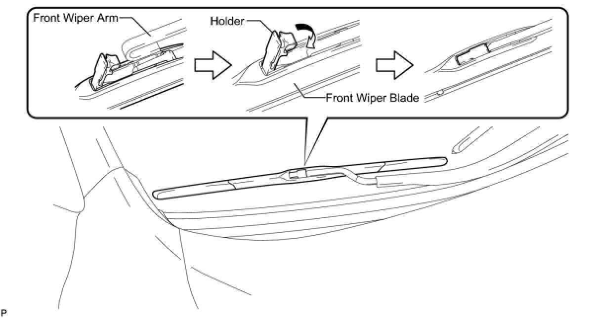 (b) Remove the front wiper blade from the front wiper arm as shown in the illustration.
