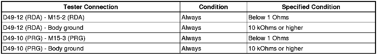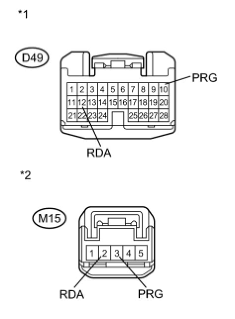 (a) Disconnect the D49 main body ECU connector and the M15 door control receiver connector.
