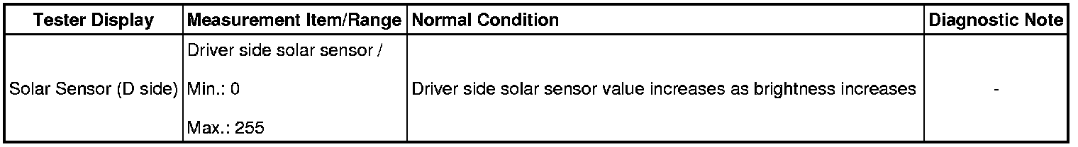 HEATING / AIR CONDITIONING: AIR CONDITIONING SYSTEM (for Automatic Air Conditioning System): B14A2: Driver Side Solar Sensor Short Circuit