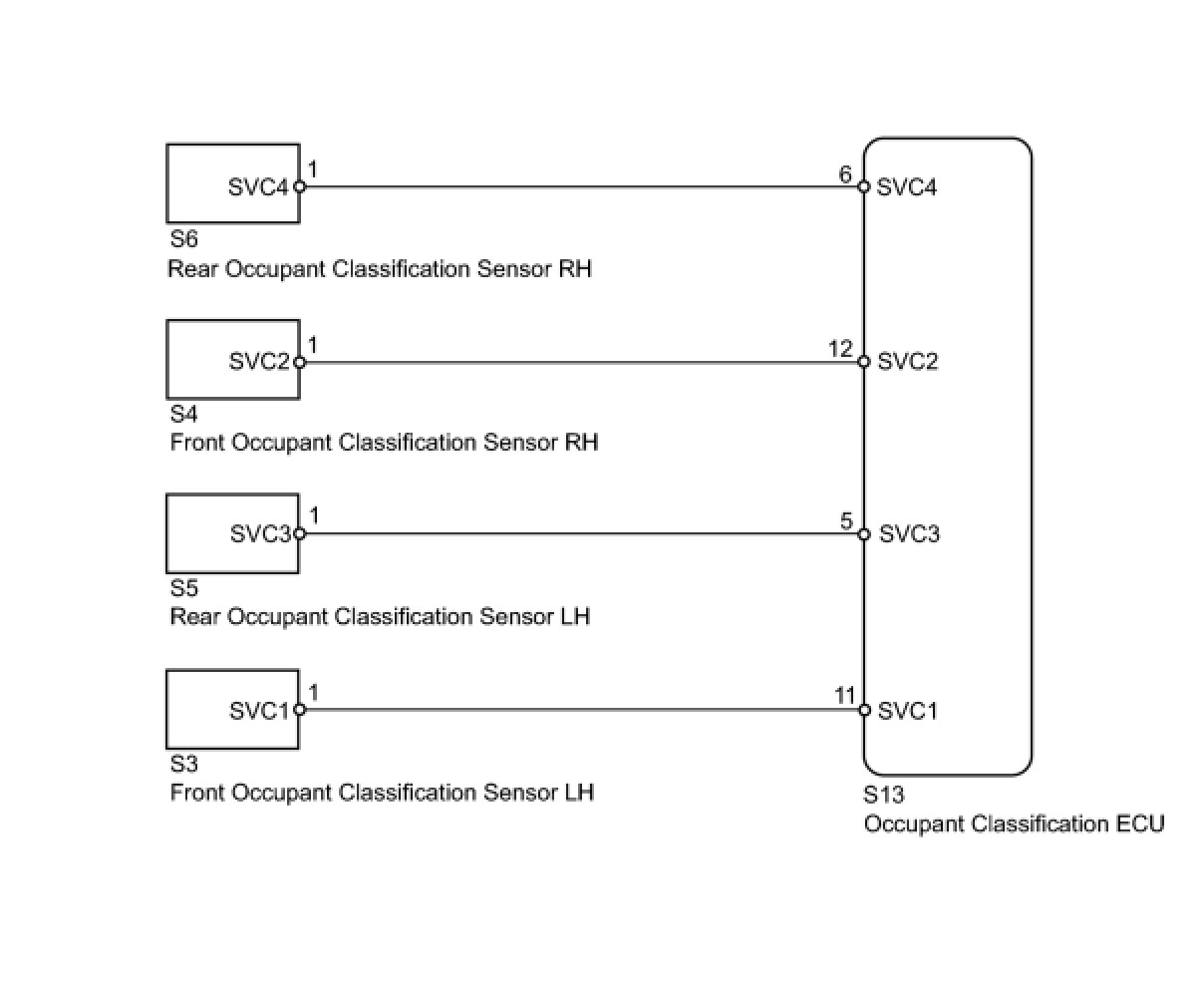 The occupant classification sensor power supply circuit consists of the occupant classification ECU and occupant classification sensors.