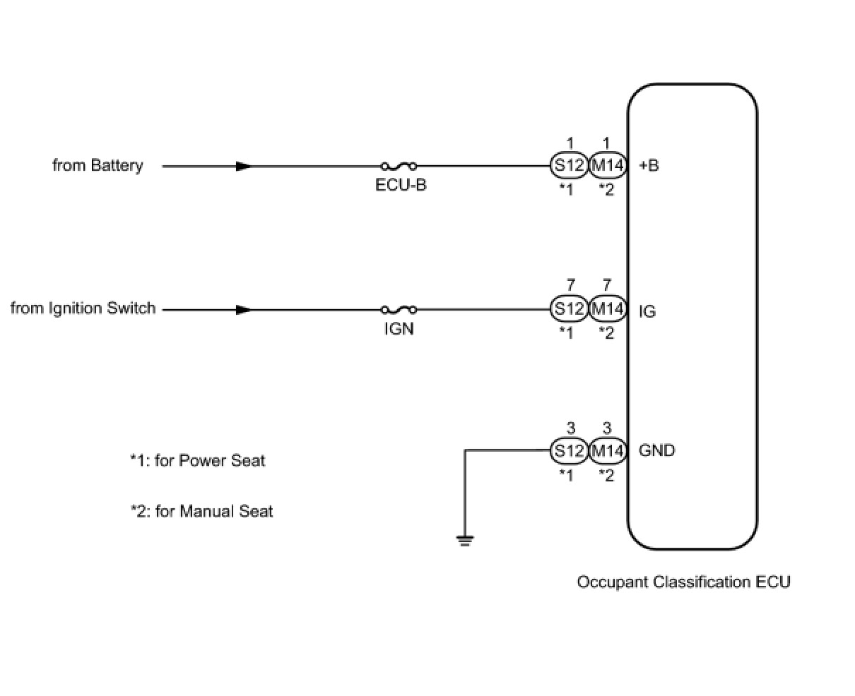 This circuit consists of the occupant classification ECU and power source circuit (battery, fuse and wire harness).
