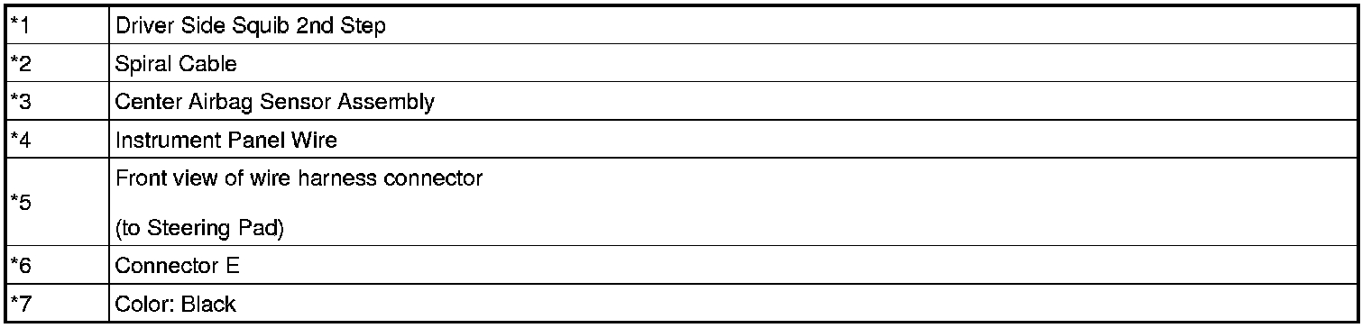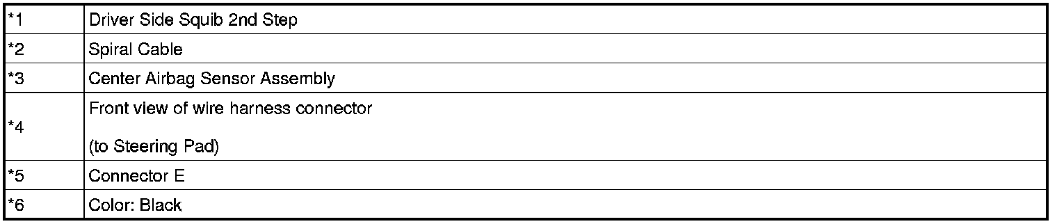 The driver side squib 2nd step circuit consists of the center airbag sensor assembly, spiral cable and steering pad.
