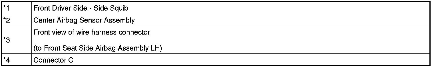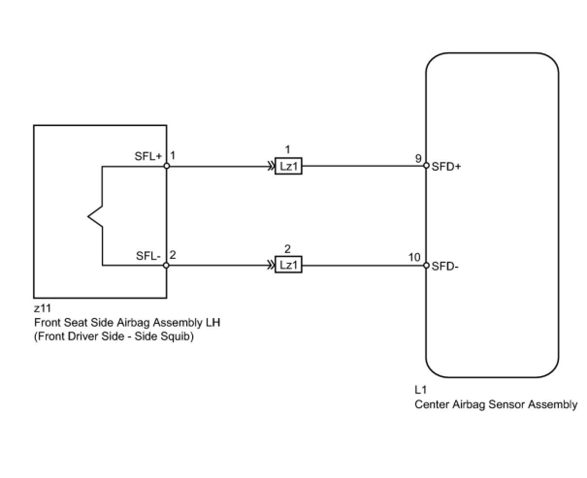 The front driver side - side squib circuit consists of the center airbag sensor assembly and front seat side airbag assembly LH.