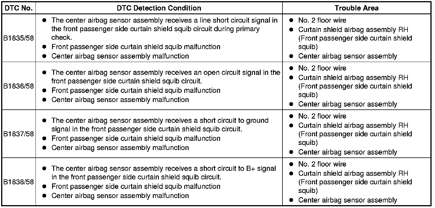 DTC B1835/58 - Short in Front Passenger Side Curtain Shield Squib Circuit