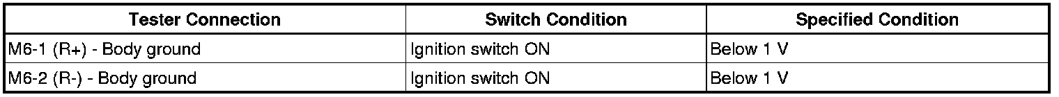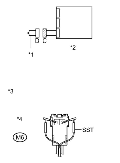 CAUTION: Never connect the tester to the front seat outer belt assembly RH (front passenger side pretensioner squib) for measurement, as this may lead to a serious injury due to airbag deployment.