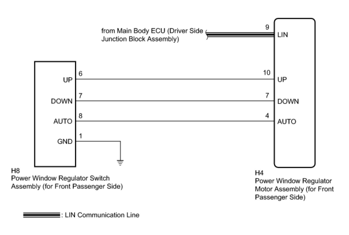 The power window regulator motor assembly is operated by the power window regulator master switch assembly or power window regulator switch assembly. The power window regulator motor assembly has motor, regulator and ECU functions.
